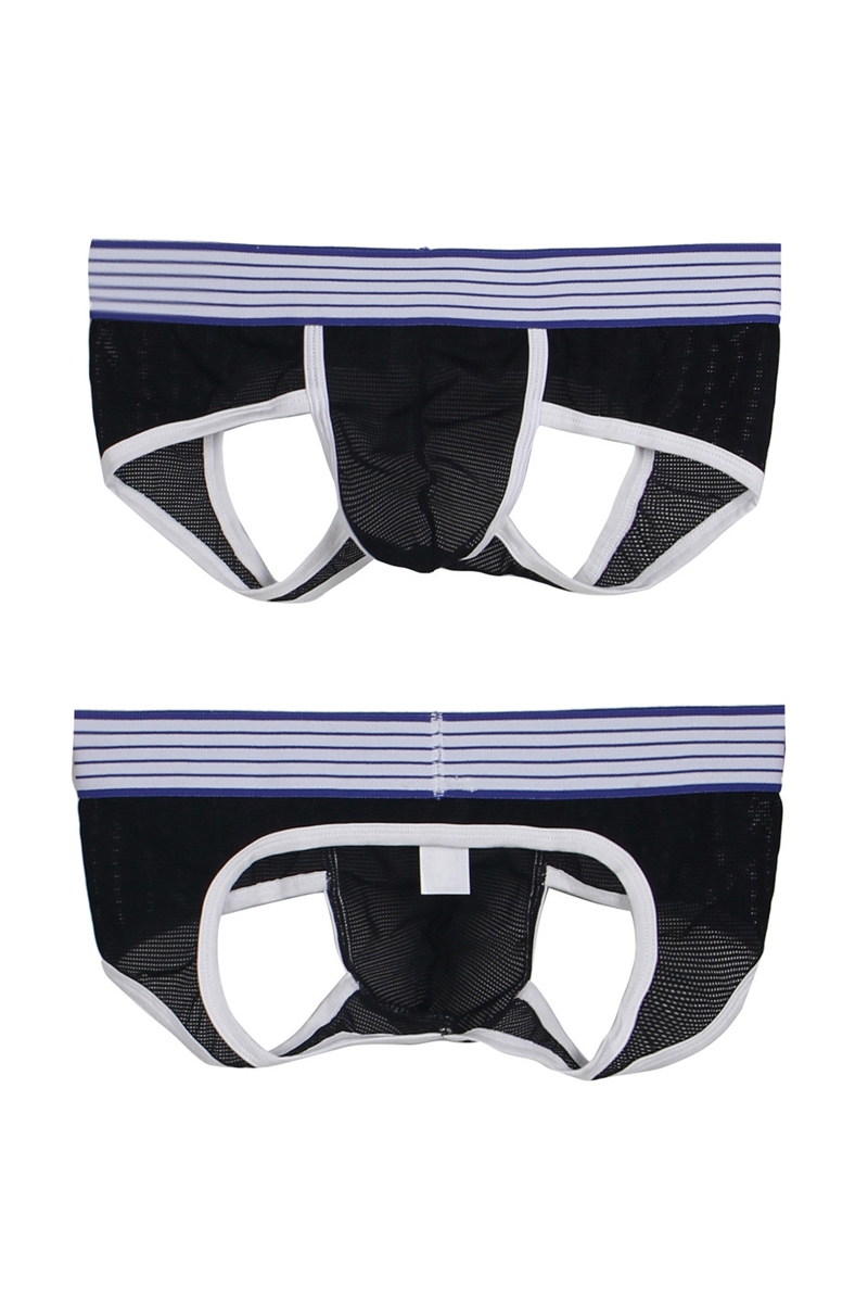 Ce jock-strap très doux est conçu en très fine résille légèrement transparente accompagnée d’une large bande élastique très confortable. Avec une coupe en forme de slip devant, la partie arrière est bien un jock-strap noir avec une ouverture sur les fesses bien arrondie.